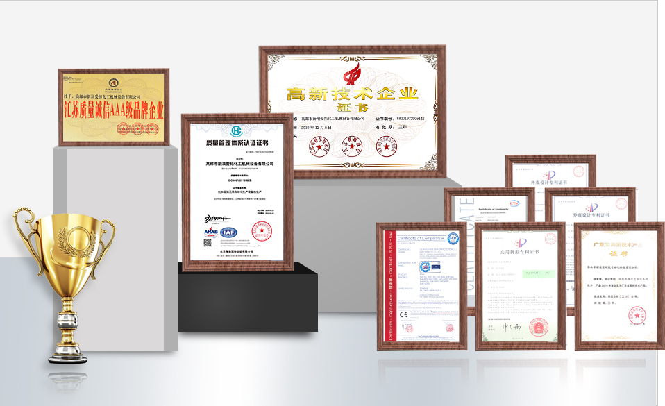 榮獲30余項實用新型和外觀專利證書,乳化機/灌裝機等多款產(chǎn)品被認定為高新技術(shù)產(chǎn)品